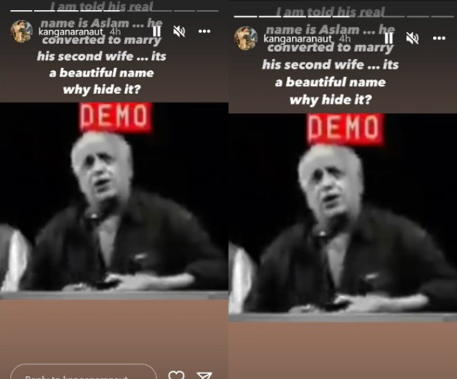 बतौर कंगना की इंस्टा स्टोरी, महेश भट्ट का असली नाम असलम है। इसी वीडियो की एक और क्लिप शेयर करते हुए कंगना ने लिखा, 'मुझे बताया गया है कि उनका (महेश भट्ट) का असली नाम असलम है। उन्होंने अपनी दूसरी पत्नी सोनी राजदान से शादी करने के लिए अपना धर्म परिवर्तन किया। वो अपना खूबसूरत नाम क्यों छिपा रहे हैं?