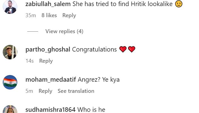 एक मिस्ट्री मैन का हाथ थामे कंगना रनोट को देख लोग हैरान हैं और वह जमकर रिएक्शन दे रहे हैं। एक यूजर ने शख्स को ऋतिक रोशन (Hrithik Roshan) का हमशक्ल बताया। एक यूजर ने लिखा, "वह ऋतिक के हमशक्ल को पाने की कोशिश कर रही हैं।" एक ने उन्हें बधाई दी, जबकि एक नेटिजन ने कहा, "अग्रेंज? ये क्या।"