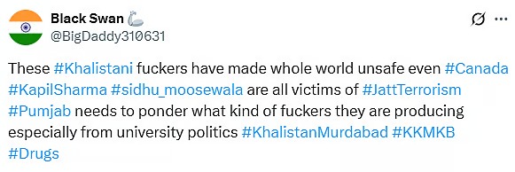 इस घटना ने सभी को झकझोर कर रख दिया है। हर कोई ये सोचकर हैरान है कि ये दुश्मनी किस लिए? कई नेटिज़न्स ने इस ट्वीट पर अपनी प्रतिक्रिया भी दी है। एक यूजर ने लिखा,"यह बहुत डरावना है... बिश्नोई लिंक्स ????।" एक अन्य एक्स यूज़र ने लिखा, "इन #खालिस्तानी कमीनों ने पूरी दुनिया को असुरक्षित बना दिया है, यहां तक कि #कनाडा भी। #कपिलशर्मा #सिद्धू_मूसेवाला सभी #जट_आतंकवाद के शिकार हैं। #पंजाब को सोचना चाहिए कि वे किस तरह के कमीने पैदा कर रहे हैं, खासकर विश्वविद्यालय की राजनीति से। #खालिस्तानमुर्दाबाद #KKMKB #ड्रग्स