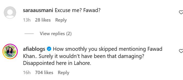 दूसरे यूजर ने लिखा कि आपने कितनी आसानी से फवाद खान का जिक्र करना छोड़ दिया। तीसरे यूजर ने लिखा कि आप फवाद को मेंशन करना भूल गए हैं।