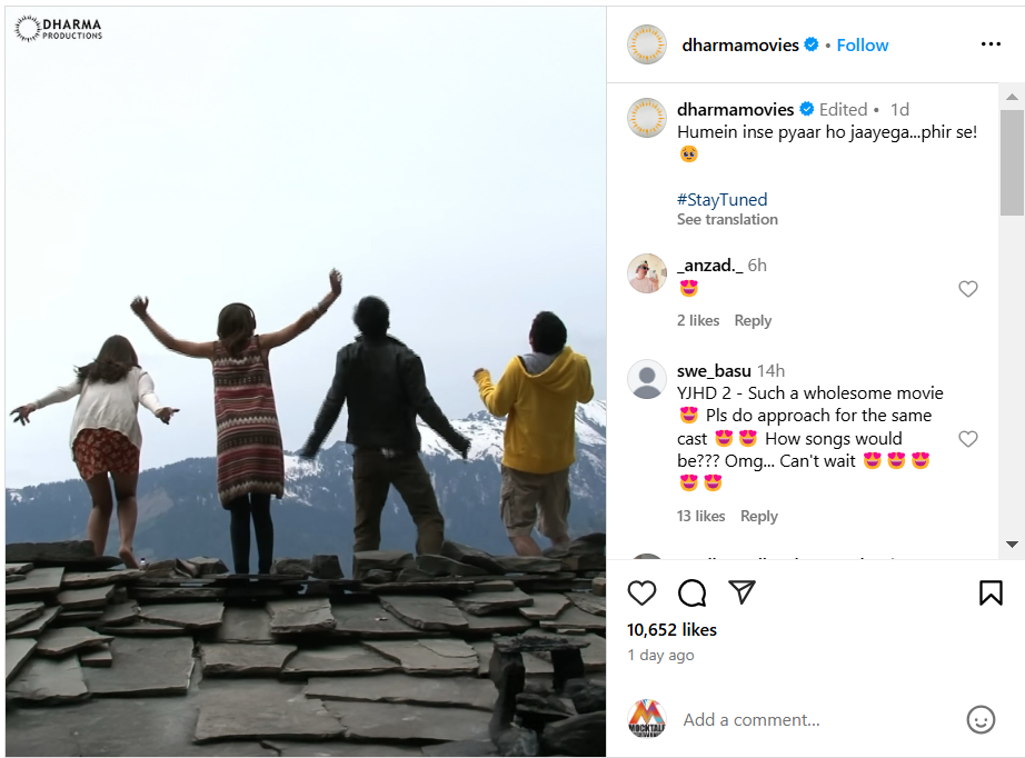 दूसरे यूजर ने लिखा, "हमें ये जवानी है दीवानी का सेकंड पार्ट उन्हीं एक्टर्स को एक साथ देखना है"। एक और अन्य यूजर ने लिखा, "इसकी रिलीज डेट बताओ यार जल्दी से और प्लीज सब जगह अच्छे से रिलीज करना मूवी को"। अब ये मेकर्स का ये जवानी है दीवानी 2 को लेकर हिंट है या फिर उन्होंने बस एक यादगार लम्हें के तौर पर मूवी का BTS शेयर किया है, ये तो वक्त ही बताएगा।