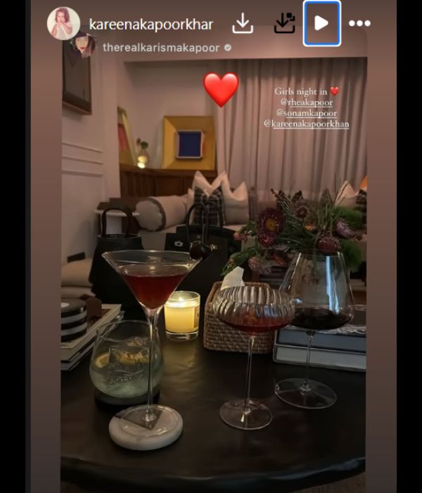 सैफ और करीना के फैंस यह भी जानना चाहते हैं कि इस पूरी घटना के दौरान एक्ट्रेस कहां थीं। दरअसल, करीना ने 8 घंटे पहले एक स्टोरी इंस्टाग्राम पर शेयर की है। इसमें देखने को मिल रहा है कि टेबल पर कुछ ड्रिंक रखी हुई है। इसमें उन्होंने अपने डिनर डेट की झलक फैंस को दिखाई। स्टोरी के कैप्शन में लिखा हुआ है कि 'गर्ल्स नाइट इन।'