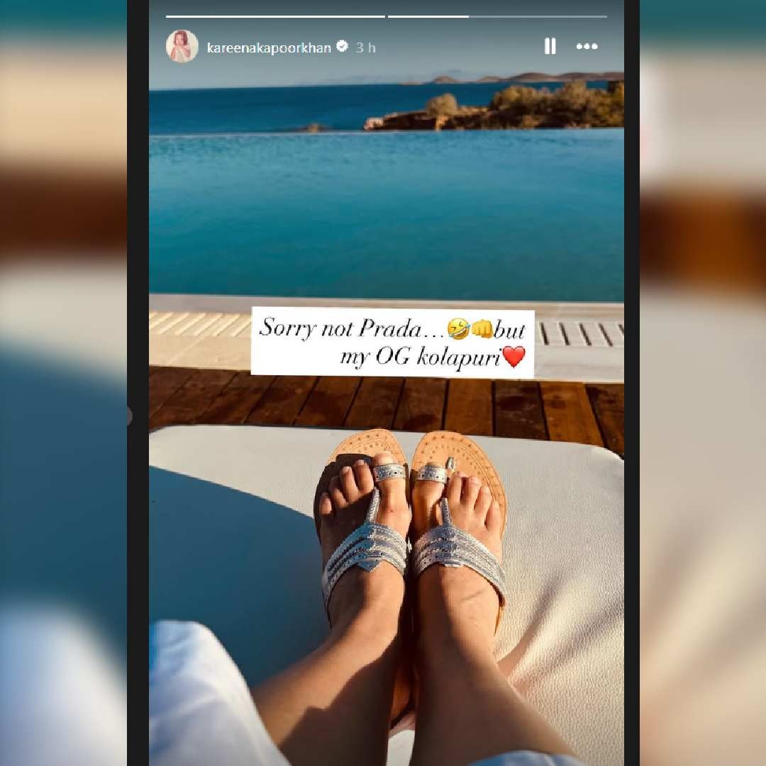 इसके साथ ही उन्होंने भारतीय पारंपरिक कारीगरी को सपोर्ट करने का भी मजबूत मैसेज दिया है। करीना इस वक्त अपने परिवार के साथ लंदन में छुट्टियां मना रही हैं। इसी दौरान उन्होंने बीच साइड से एक तस्वीर शेयर की, जिसमें वो आराम से व्हाइट कलर के आउटफिट में कहीं पूल साइड बैठी हैं। उनके पैरों में चमचमाती सिल्वर कोल्हापुरी चप्पलें नजर आ रही हैं। इस पोस्ट में करीना ने लिखा- सॉरी प्रादा नहीं...बल्कि मेरी ओरिजनल कोल्हापुरी। इसके साथ ही उन्होंने हंसी और पंचिंग इमोजी के साथ दिल का इमोजी भी लगाया गया। इसके जरिए करीना ने यह भी स्पष्ट किया कि वह लक्जरी ब्रांड के बजाय क्लासिक चमड़े की सैंडल पहनना पसंद करेंगी।