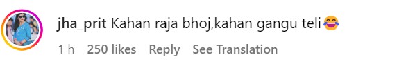 वहीं एक अन्य यूजर ने कहावत लिखते हुए कहा है- कहां राजा भोग, कहां गंगू तेली। इस तरह से तमाम लोग करीना और अंकिता के ऐसे जैसे लुक को लेकर अपनी-अपनी प्रतिक्रिया दे रहे हैं।