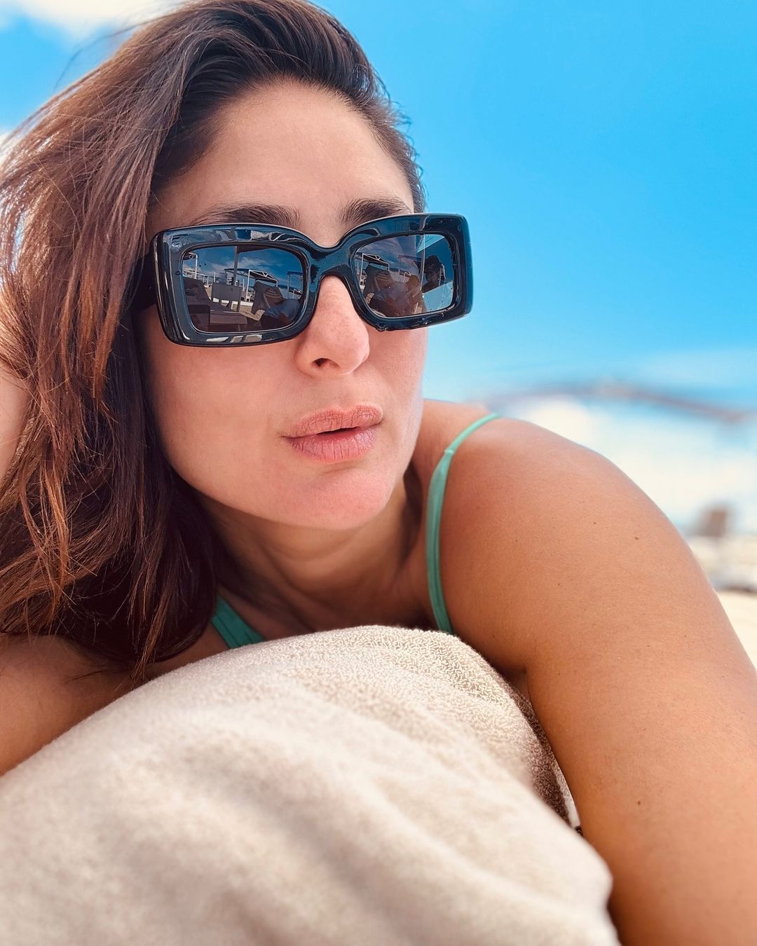 वहीं, अब गुरुवार को उन्होंने अपने इंस्टाग्राम पर अपनी बीच फोटोज शेयर की है, जिसमें बेबो कहर ढाती नजर आ रही हैं। फोटो में करीना ब्लू की बिकिनी पहने नजर आ रही हैं।