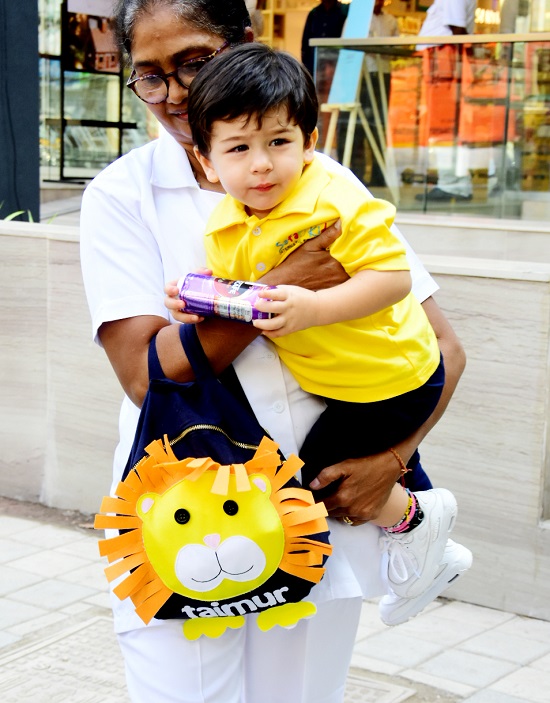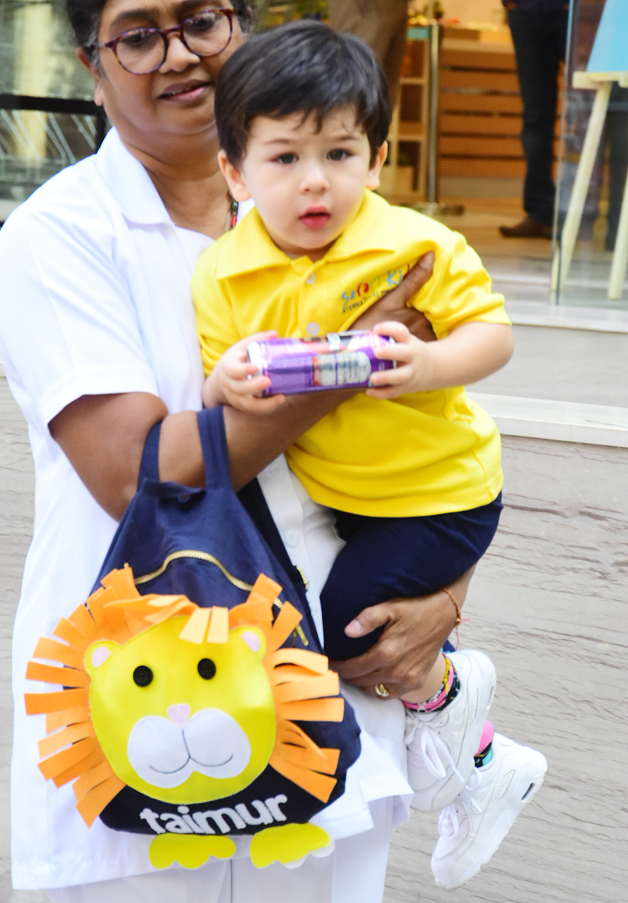 अक्सर तैमूर के साथ उनकी नैनी भी नज़र आती हैं। गौरतलब है कि ये नैनी तैमूर के जन्म के समय से ही उनके साथ हैं और उनका ध्यान रख रही हैं। इस तस्वीर में भी तैमूर कितने क्यूट लग रहे हैं। आप देख सकते हैं तैमूर के हाथ में बिस्किट का एक पैकेट है जबकि उनकी नैनी के हाथ में है एक स्कूल बैग। स्कूल बैग का कलर तैमूर के ड्रेस से भी मेल खा रहा है। बिल्कुल मैचिंग! मैचिंग!