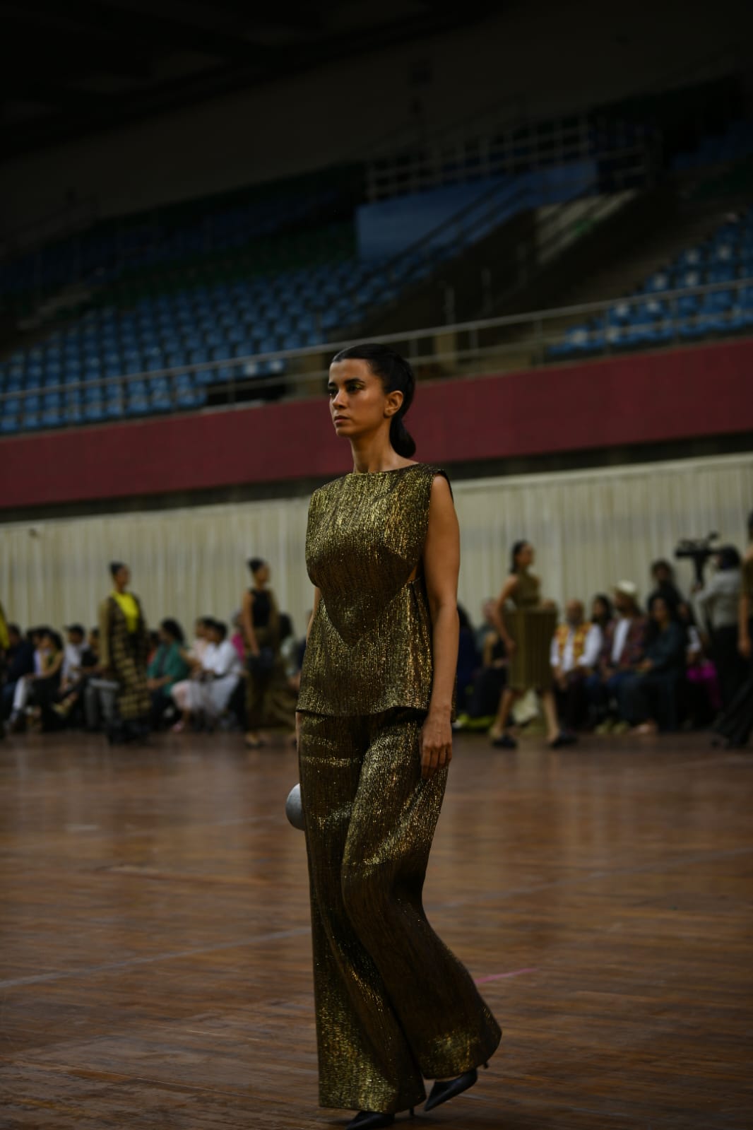 इस बीच करिश्मा कपूर की कुछ लेटेस्ट तस्वीरें सामने आई हैं, जिनमें वह लंबे समय बाद रैंप पर फैशन का जलवा बिखेरती हुईं नजर आ रही हैं। करिश्मा के अलावा एक्ट्रेसेज कल्कि कोचलिन और सबा आजाद (Saba Azad) भी इस मौके पर दिखाई दी हैं।