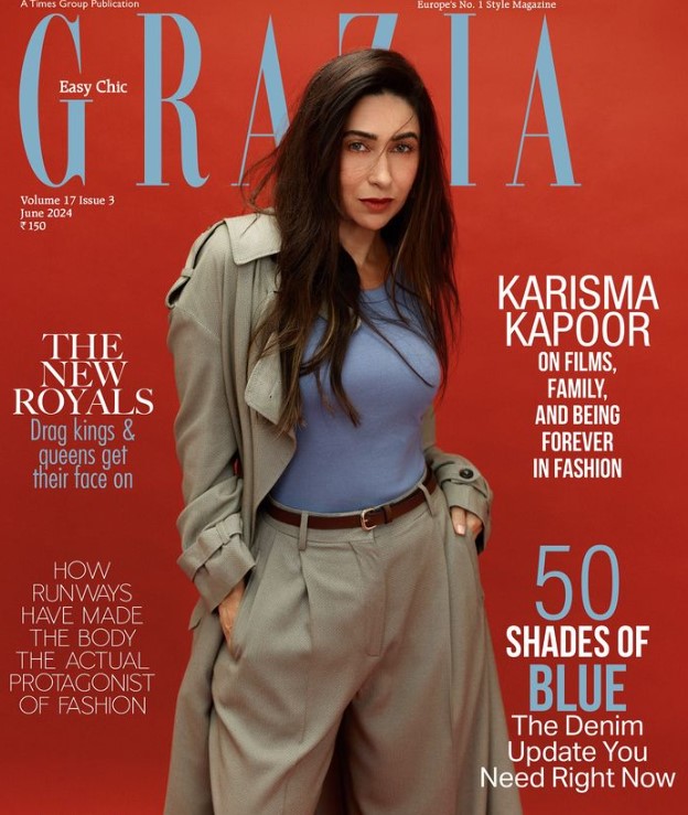 25 जून को एक्ट्रेस का बर्थ डे है। इस खास मौके से पहले करिश्मा एक मैगजीन के कवर फोटोशूट को लेकर चर्चा में हैं। कवर पेज पर नजर आईं करिश्मा बिलकुल अलग अंदाज में दिख रही हैं। उन्होंने ट्रेंच कोट और मैचिंग प्लीटेड पैंट के साथ एक पेस्टल ब्लू टॉप पहना हुआ है।