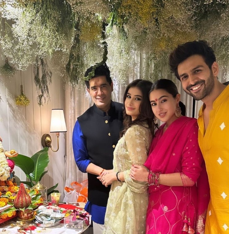 पिछले साल गणपति पूजन से कार्तिक की सारा के साथ फोटो वायरल हुई थी। उनके साथ मनीष मल्होत्रा (Manish Malhotra) और उनकी बेटी राशा भी नजर आई थीं। इस फोटो ने बहुत लोगों का ध्यान खींचा था। अब कार्तिक ने उस तस्वीर पर चुप्पी तोड़ सारा के साथ दोबारा काम करने की इच्छा जाहिर की है।