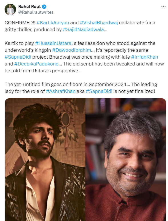सीनियर फिल्म जर्नलिस्ट राहुल राउत ने ट्वीट करते हुए अपने एक्स अकाउंट पर जानकारी शेयर करते हुए बताया कि विशाल भारद्वाज की डार्क थ्रिलर में डॉन हुसैन उस्तारा का किरदार अदा कर सकते हैं। डॉन हुसैन उस्तारा वो थे, जो अंडरवर्ल्ड किंग और वॉन्टेड दाऊद इब्राहिम के खिलाफ निडरता से खड़े थे।