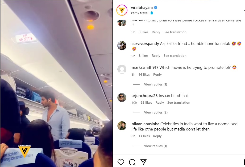 हाल ही में कार्तिक को इंडिगो एयरलाइन में इकोनॉमी क्लास में उड़ान भरते देखा गया। लोगों ने जब उन्हें अपने बीच देखा, तो खुशी से गदगद हो उठे। एक्टर का मुंबई में लैंड करने से पहले ही फ्लाइट वाला वीडियो वायरल हो गया। विरल भयानी के अकाउंट से एक्टर का वीडियो शेयर किया गया है।