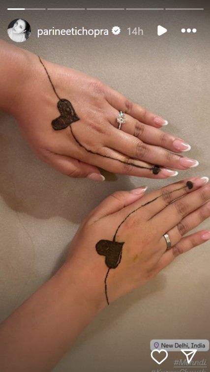 परिणीति चोपड़ा ने हाथों के पीछे लगी दिल की डिजाइन की तस्वीर शेयर की है।