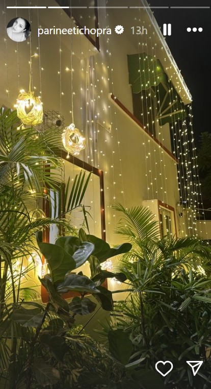 इसके साथ ही उन्होंने घर के सेलिब्रेशन की तस्वीरें भी शेयर की हैं। करवा चौथ पर एक्ट्रेस का घर लाइट्स से जगमग है। परिणीति चोपड़ा करवा चौथ सेलिब्रेशन अपने ससुराल नई दिल्ली में करेंगी।