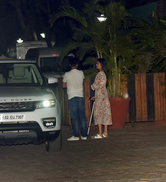 इस दूसरी तस्वीर में आप देख सकते हैं कि कटरीना ने चलने के लिए सहारा लिया हुआ है। देखकर समझा जा सकता है कि उनके पैरों में चोट लगी है। चोट के बावजूद कटरीना यह फ़िल्म देखने पहुंची।