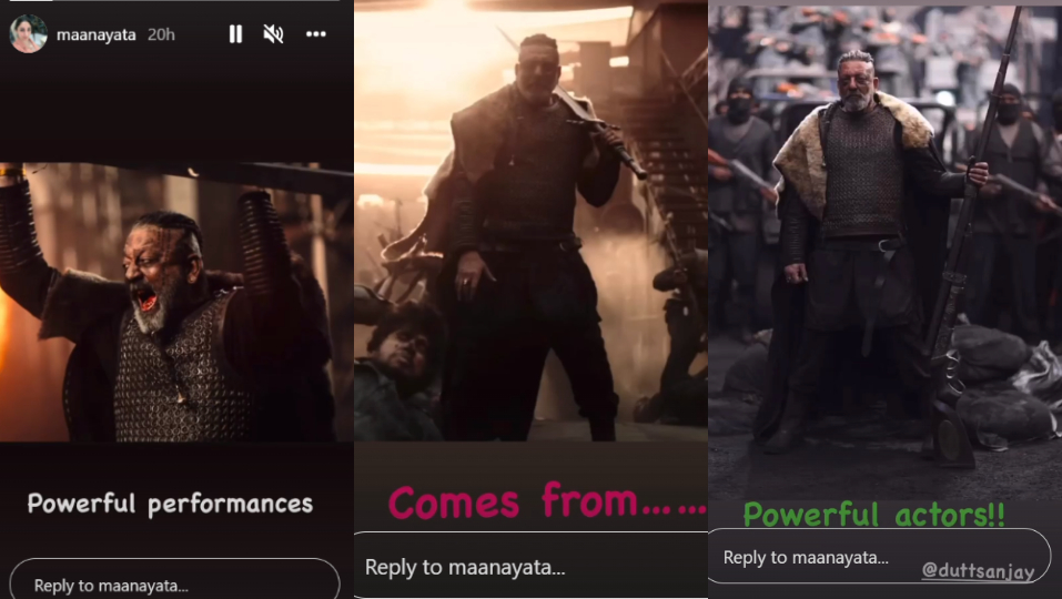 मान्यता दत्त कहती हैं, ''फिल्म कई मायनों में हमारे लिए खास जर्नी रही है। जिन लोगों ने उन्हें अक्सर गैर-जिम्मेदार, लापरवाह और बैड ब्वॉय के रूप में लेबल किया है, उन्हें उनके दृढ़ संकल्प, समर्पण और प्रतिबद्धता को समझने के लिए यह फिल्म देखनी चाहिए। संजू ने इस फिल्म को अपनी जिंदगी के सबसे नाजुक दौर में शूट किया... हमारी जिंदगी। उन्होंने बिना शिकायत के उन सभी जबरदस्त दृश्यों को हमेशा की तरह उसी जुनून के साथ शूट किया। मेरे लिए वह फिल्म के हीरो हैं। शांत, शक्तिशाली, उत्साही और आखिर तक लड़ने वाला! KGF2 अधीरा की फिल्म है। इसके साथ संजू एक धमाके के साथ वापस आ गये हैं और अपनी वापसी को वो इससे बेहतर तरीके से बयां नहीं कर सकते थे- आ रहा हूं में!" मान्यता ने इंस्टाग्राम स्टोरी के जरिए भी संजय की परफॉर्मेंस की तारीफ की।