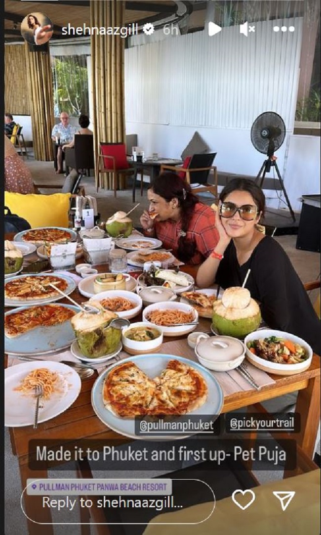 शहनाज गिल ने लिखा है, "फुकेट आकर पेट पूजा कर रही हूं"