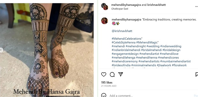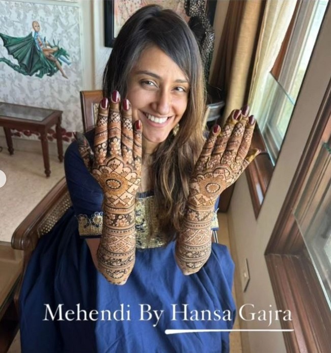 "ट्रेडिशन का पालन करते हुए यादें बनाते हुए कृष्णा भट्ट। मेहंदी सेलिब्रेशन।"