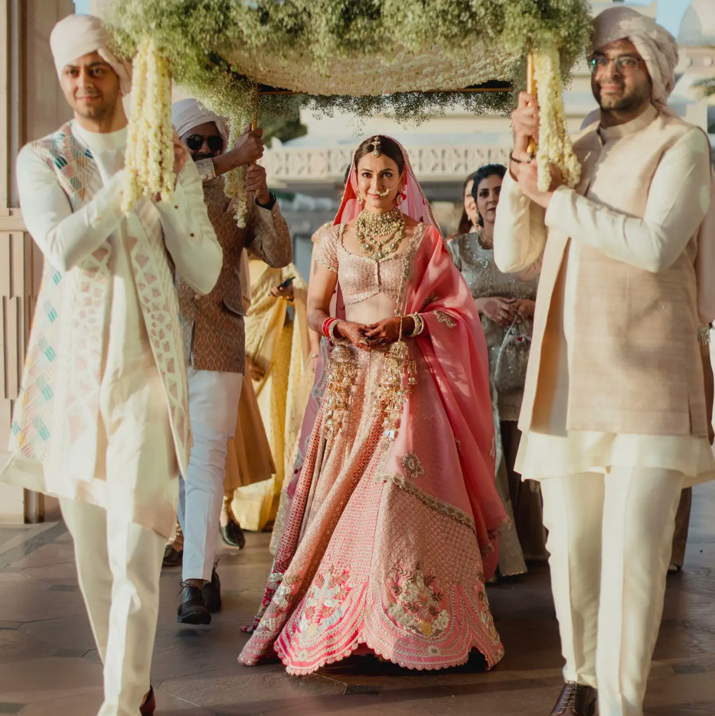 शादी के बाद कृति खरबंदा और पुलकित सम्राट ने इंस्टाग्राम हैंडल पर लेटेस्ट तस्वीरों को शेयर किया। इन फोटो में आप देख सकते हैं कि कृति पिंक कलर के शानदार शादी को जोड़े में दिखाई दे रही हैं। मशहूर फैशन डिजाइनर अनमिका खन्ना ने अदाकारा के इस शादी के लहंगे को तैयार किया है। पिंकविला की खबर के मुताबिक इस वेडिंग आउटफिट के जरिए कृति ने अपनी सास की अंतिम इच्छा का पूरा किया है।