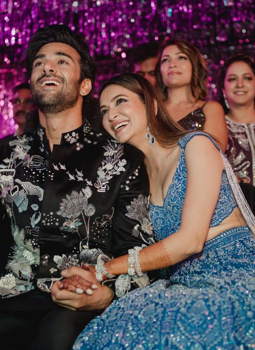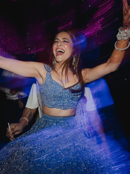 पहली दो तस्वीरों में दोनों अपने संगीत में खुलकर डांस करते हुए दिखाई दिए। बाकी कई फोटोज में दोनों रोमांटिक होते हुए नजर आए। इसके साथ ही एक्ट्रेस ने सोलो डांस परफॉर्मेंस भी दी। अपने संगीत सेरेमनी में कृति ने ब्लू कलर का हैवी लहंगा कैरी किया। इस ड्रेस में एक्ट्रेस बेहद खूबसूरत लग रही थीं। एक्ट्रेस ज्वेलरी, ओपन हेयर और ग्लॉसी मेकअप में साथ कमाल की लग रही थीं। वहीं, पुलकित ने ब्लैक कलर का प्रिंटेड जोधपुरी सूट पहना।