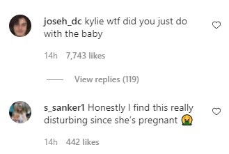 काइली जेनर ने अपने आधिकारिक इंस्टाग्राम अकाउंट के जरिए इन तस्वीरों को शेयर किया है। इन तस्वीरों पर सोशल मीडिया यूजर्स कमेंट कर काइली कोट्रोल कर रहे हैं। एक यूजर ने इस तस्वीर पर कमेंट करते हुए लिखा, 'बहन बच्चा कहां है?' एक अन्य यूजर ने लिखा, 'ये क्या किया है तुमने?' वहीं एक और यूजर ने लिखा, 'ये डिस्टर्बिंग है खासकर इसलिए क्योंकि तुम प्रेग्नेंट हो। पर ये सिर्फ मेरी राय है, जो कोई मायने नहीं रखता।' इतना ही नहीं लोग और भी कमेंट कर काइली की प्रेग्नेंसी के दौरान ये शूट होने पर उन्हें जमकर लोगों खरी-खोटी सुना रहे हैं।
