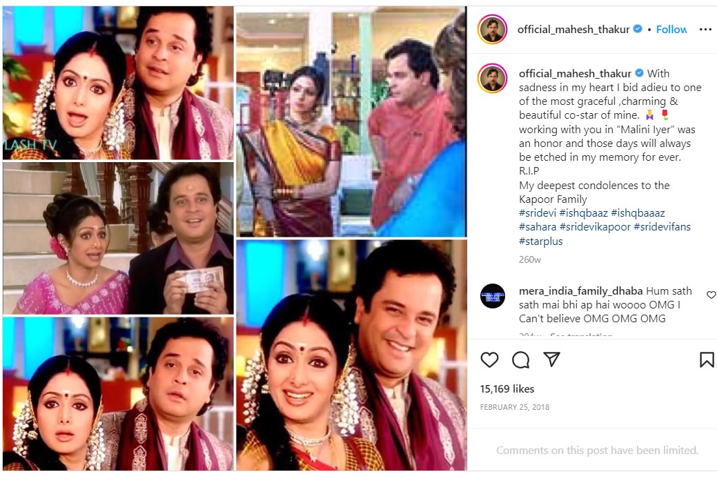दिवंगत अदाकारा श्रीदेवी को बॉलीवुड की पहली फीमेल सुपरस्टार कहा जाता था। सिल्वर स्क्रीन पर उन्होंने लगभग हर बड़े स्टार के साथ काम किया था। उनका यही जादू छोटे पर्दे प भी चला, जब एक्ट्रेस ने 'मालिनी अय्यर' नाम के शो में एक्टिंग की थी। यह 2004 का टीवी सीरियल है, जिसमें उनकी जोड़ी छोटे पर्दे के नामी अभिनेता महेश ठाकुर के साथ बनी थी।