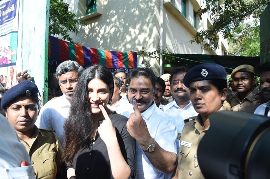 कमल हासन भी अपनी बेटी श्रुति हासन के साथ चेन्नई में अपने पोलिंग बूथ पर पहुंचे और लाइन में लगे। वोट देकर बाहर आये तो सभी से इस लोकतंत्र पर्व में शामिल होने की अपील की। कमल हासन ने मक्कल निधि मैयम नाम की पार्टी बनाई है और वो उसके अध्यक्ष हैं।