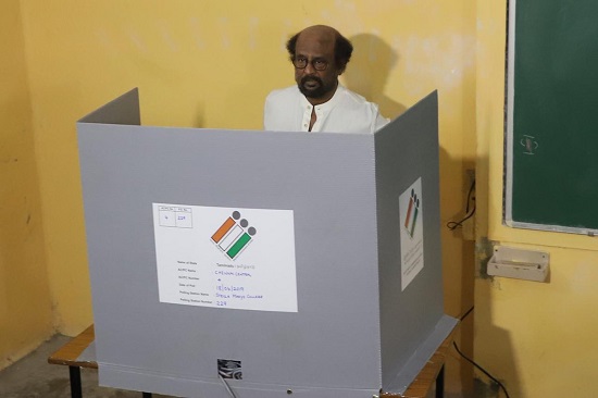 अजित और शालिनी ने थिरुवनमियूर पोलिंग बूथ पर पहुँच कर वोट डाला। रजनीकांत सुबह सुबह ही स्टेला मारिस कॉलेज पहुंचे और अपने मताधिकार का इस्तेमाल किया। रजनी आजकल मुंबई में अपनी फिल्म दरबार की शूटिंग कर रहे हैं लेकिन आज एक दिन के लिए चेन्नई जा कर वोट डाला।