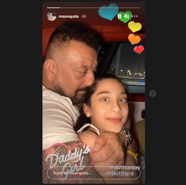 मान्यता दत्त ने जो तस्वीर शेयर की है उस तस्वीर में संजय दत्त और बेटी इकरा एक कार में बैठे नजर आ रहे हैं। संजय दत्त अपनी बेटी को गोद में लिए और गले से लगाए बैठे हैं। तस्वीर में इकरा कैमरे की ओर देखते हुए मुस्कुरा रही हैं। तो वहीं संजय दत्त का ध्यान कैमरा की ओर नहीं है। इस तस्वीर में संजय और इकरा की बॉन्डिंग बेहद प्यारी और खूबसूरत नजर आ रही है।