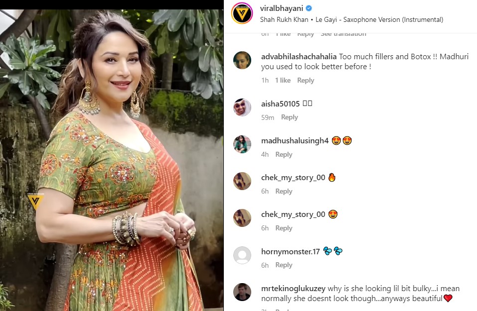 फैंस ने माधुरी को बोटॉक्स कराने के लिए ट्रोल करना शुरू कर दिया है। यूजर्स इनके फेस को लेकर कई बातें कर रहे हैं। वीडियो में माधुरी जब स्माइल कर रही हैं, तो यूजर्स को आर्टिफिशियल और फेक लग रही है। कुछ लोग उनसे सवाल कर रहे हैं कि क्या वाकई में उन्होंने बोटॉक्स कराया है? एक यूजर ने पूछा, 'माधुरी का चेहरा इतना भरा हुआ क्यों लग रहा है? वह पहले ऐसी नहीं लगती थीं।' तो वहीं एक अन्य यूजर ने कहा कि माधुरी पहले ज्यादा अच्छी लगती थीं।