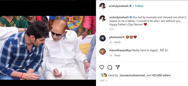 महेश बाबू इंस्टाग्राम पर लिखते है, 'आप एक महान व्यक्ति थे।'