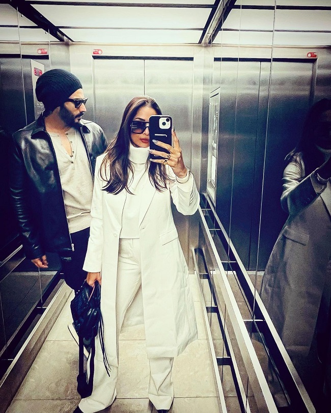 मलाइका अरोड़ा ने ऑल व्हाइट सूट पैंट पहन रखा है और वह कैमरा लेकर पिक क्लिक करती हुई नजर आ रही है। अर्जुन कपूर और मलाइका अरोड़ा बॉलीवुड के पसंदीदा कपल में से एक है। उनकी तस्वीरें इंस्टाग्राम पर काफी पसंद की जा रही हैं। ना सिर्फ फैंस बल्कि कई लोगों ने इस पर प्रतिक्रिया दी है। इनमें सोनम कपूर और करीना कपूर भी शामिल है।