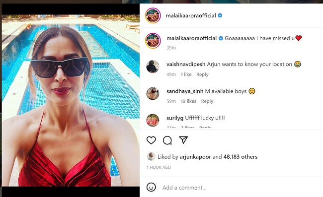 मलाइका अरोड़ा की तस्वीरें इंस्टाग्राम पर वायरल हो गई है। इसे 31 मिनट में 48 हजार से ज्यादा लाइक्स मिले है। इसमें अर्जुन कपूर भी शामिल है। मलाइका अरोड़ा की तस्वीरों पर 550 से ज्यादा कमेंट किए गए हैं। कई लोगों ने इस पर उन्हें ट्रोल भी किया है। एक ने लिखा है, 'अर्जुन आपका पता जानना चाहता है।' एक ने लिखा है, 'बेबी गर्ल।' एक ने लिखा है, 'वेरी कूल।' एक ने लिखा है, 'एकदम कड़क।' एक ने लिखा है, 'आपकी हॉटनेस का राज क्या है?'