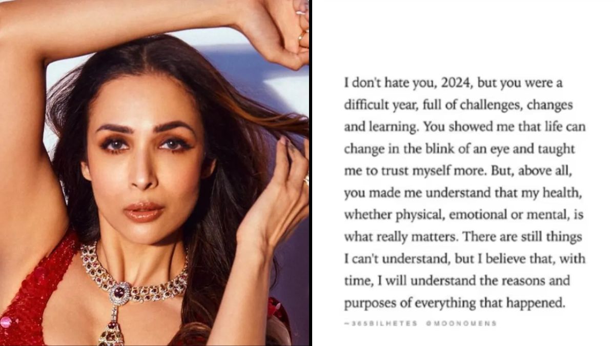 साल 2024 खत्म होने जा रहा है और कल से एक नए साल 2025 (Happy New Year 2025) की शुरुआत होने जा रही है। इस दौरान बॉलीवुड एक्ट्रेस मलाइका अरोड़ा (Malaika Arora) ने न्यू ईयर से पहले सोशल मीडिया पर ये बताया है कि बीता साल 2024 उनके लिए कैसा गुजरा है। पोस्ट में मलाइका ने अपना दर्द को बयां किया है।
