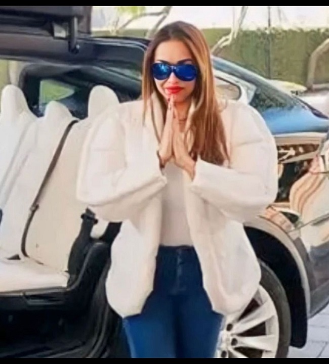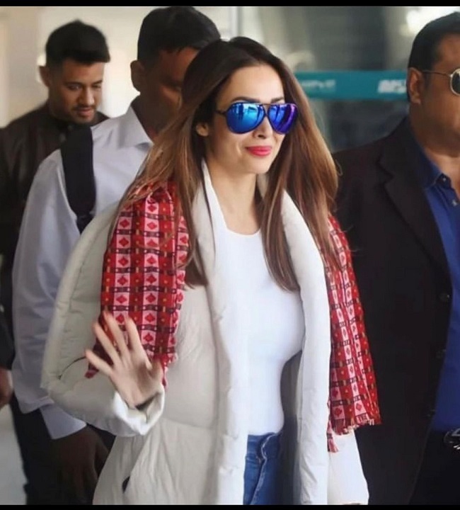 मलाइका अरोड़ा ने टीशर्ट, जैकेट और डेनिम पहन रखी है