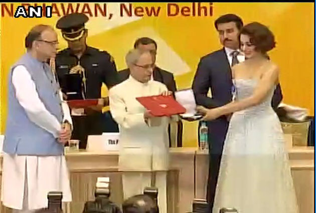 पुरस्कार के तौर पर उन्हें स्वर्ण कमल, 10 लाख रुपये और शॉल प्रदान किए गए। अमिताभ बच्चन को 'पीकू' फिल्म के लिए सर्वश्रेष्ठ अभिनेता के पुरस्कार तौर पर रजत कमल और 50 हजार रुपये दिए गए। इससे पहले वह तीन बार राष्ट्रीय पुरस्कार पा चुके हैं। कंगना को फिल्म 'तनु वेड्स मनु रिटर्नन्स' के लिए सर्वश्रेष्ठ अभिनेत्री का पुरस्कार मिला। उन्हें भी पुरस्कार के तौर पर रजत कमल और 50 हजार रुपये प्रदान किए गए। राष्ट्रीय पुरस्कार की यह उनकी तीसरी ट्राफी है।