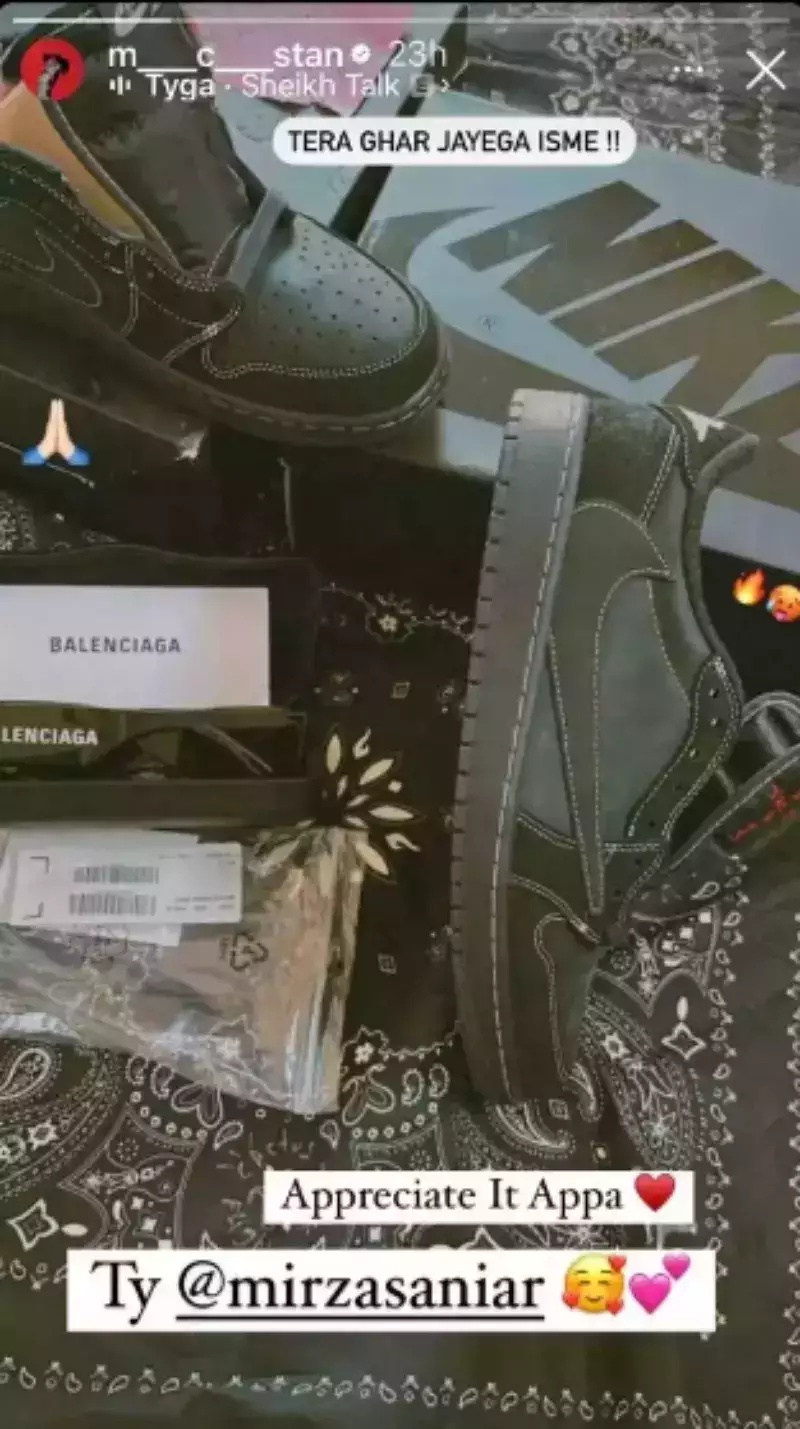 स्टैन के जेस्चर से खुश हो कर सानिया ने उन्हें उपहार में 91 हजार रुपये के ब्लैक नाइके के जूते और 30 हजार रुपये के सनग्लासेस दिए। स्टैन ने इन गिफ्ट्स से गदगद हैं और उन्होंने सनिया को धन्यवाद भी लिखा- एमसी स्टैन ने इंस्टाग्राम पर सानिया मिर्जा से मिले उपहारों की तस्वीर को स्टोरी में शेयर करते हुए उन्हें 'आपा' (उर्दू में बड़ी बहन) कहकर धन्यवाद दिया। बिग बॉस 16 के विजेता ने लिखा, 'तेरा घर जाइगा इसमें', अप्पा। धन्यवाद"