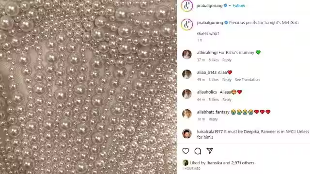 यही नहीं, प्रबल गुरुंग ने इंस्टाग्राम पेज पर आलिय के ड्रेस की झलक भी दिखाई है, जिसे वह मेट गाला के रेड कार्पेट पर जलवा बिखेरती नजर आएंगी। एक फोटो ब्लैक आउटफिट की है और एक व्हाइट ड्रेस है जिस पर मोतियों से वर्क किया गया है। इन तस्वीरों के साथ प्रबल ने फैंस के के एक्साइटमेंट को बढ़ा दिया है। इन तस्वीरों पर कमेंट कर यूजर्स इस बात का इंतजार कर रहे हैं कि आलिया कब इन ड्रेस को पहनकर सामने आएंगी।