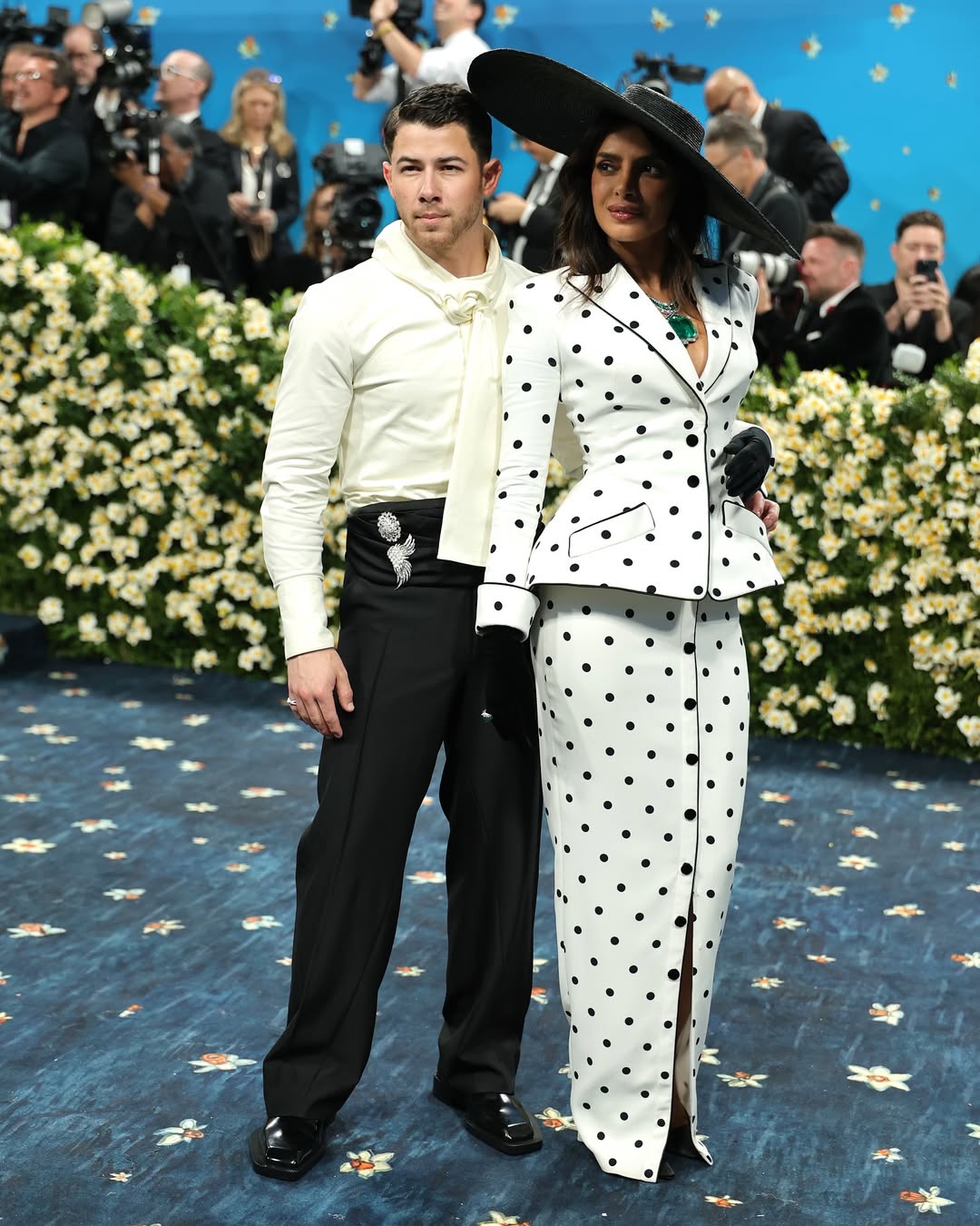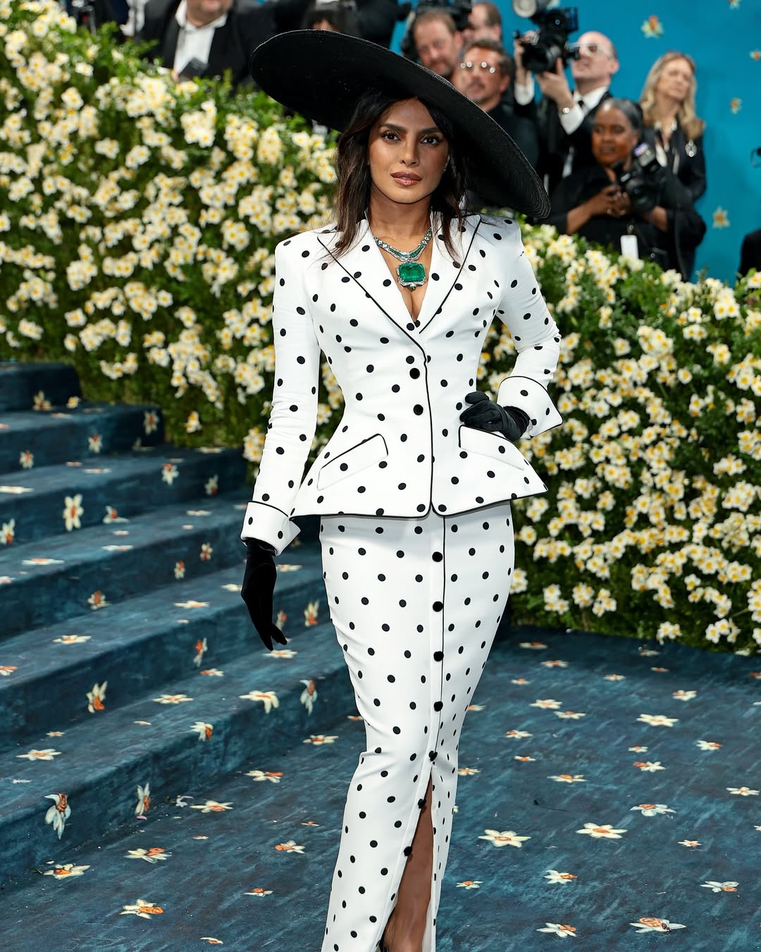 इस थीम में ब्लैक फैशन और स्टाइल के इतिहास को दर्शाया गया है। प्रियंका का आउटफिट एक सफेद ब्लेजर और स्कर्ट का कॉम्बिनेशन था, जिसमें काले पोल्का डॉट्स इसे क्लासिक और मॉडर्न बनाते थे। उन्होंने इसे एक बड़े काले हैट और बुल्गारी के शानदार ज्वेलरी सेट के साथ पूरा किया, जिसमें एक पेंडेंट सबसे ज्यादा ध्यान खींच रहा था।
