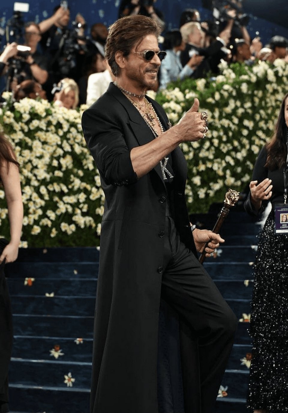 शाह रुख खान के रेड कारपेट लुक की बात करें तो उन्होंने मेट गाला एंट्री में सब्यासाची का ब्लैक सूट चुना, जिसके साथ गोल्ड जूलरी और ‘K’ वाला नेकपीस उनकी ‘किंग खान’ वाइब को चीख-चीखकर बयां कर रहा था। उनका ये लुक ब्लैक डैंडीइज्म थीम को परफेक्टली मैच कर रहा था।