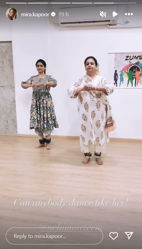 हाल ही में,मीरा ने अपनी इंस्टाग्राम स्टोरीज में एक वीडियो शेयर किया है जिसमें नीलिमा अजीम डांस करती हुईं नजर आ रही हैं। वीडियो पोस्ट करते हुए मीरा ने कैप्शन लिखा, “क्या कोई इनके जैसा डांस कर सकता है! इसके साथ ही उन्होंने स्टोरी में निलीमा अजीम को टैग भी किया।”