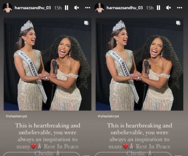 मिस यूनिवर्स हरनाज संधू ने मिस यूएसए 2019 चेल्सी क्रिस्ट के निधन पर जताया शोक, कहा- पूरी तरह टूट गई हूं