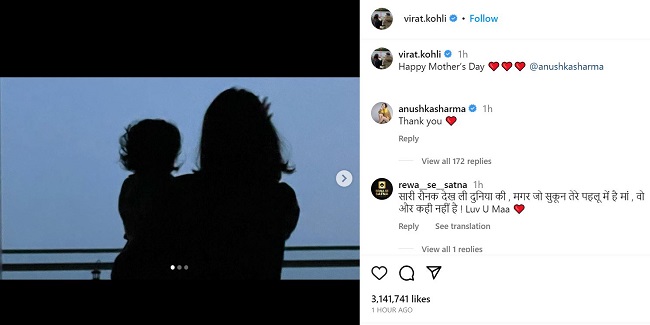 विराट कोहली ने मदर्स डे पर अनुष्का शर्मा की खास तस्वीर शेयर की है