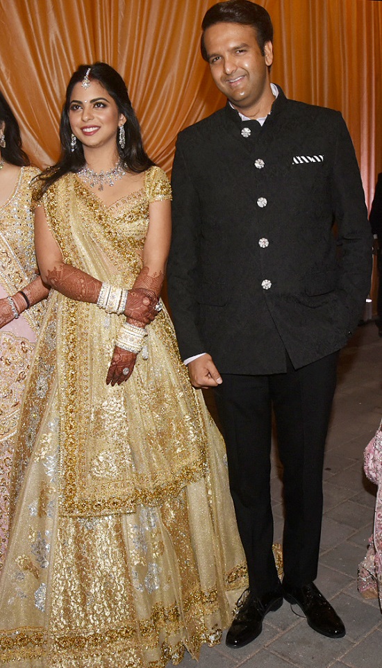 ईशा की शादी के लिए शाह रुख़ ख़ान भी पत्नी गौरी ख़ान के साथ पहुंचे। जबकि आमिर ख़ान भी किरण राव के साथ इस जश्न में शामिल हुए।
