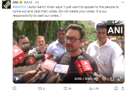 इस दौरान उन्होंने मीडिया से बातचीत भी की और कहा, "मैं बस सभी हिंदुस्तानियों से यही अपील करना चाहता हूं कि वह बाहर आए और वोट करें। हमारे इस विशाल लोकतंत्र का हिस्सा बनें। ये हमारी जिम्मेदारी भी है, अपना एक भी वोट वेस्ट न करें"। इनके अलावा सैफ अली खान, करीना कपूर खान, टाइगर श्रॉफ, कियारा आडवाणी, अथिया शेट्टी, अहान शेट्टी, गुलशन ग्रोवर, अनन्या पांडे, चंकी पांडे ने भी अपने मताधिकार का प्रयोग किया।