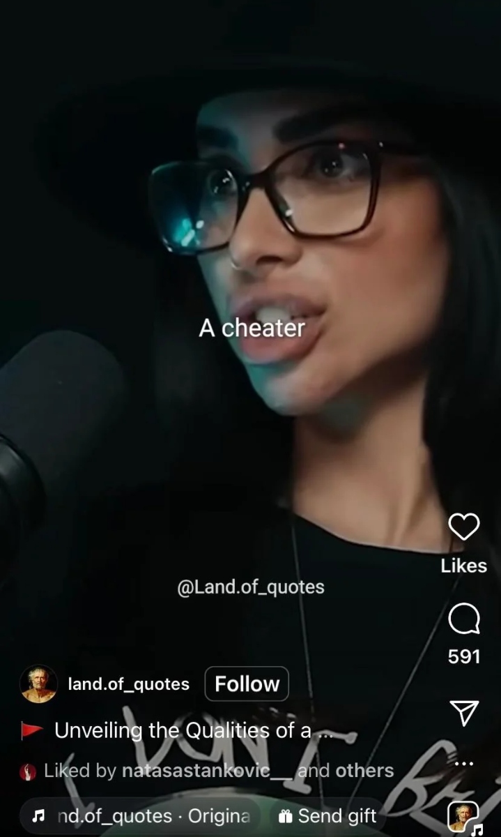 रेडिट पर कई स्क्रीनशॉट पोस्ट किए गए है, जिनमें से नताशा स्टेनकोविक द्वारा पसंद किए गए पोस्ट भी वायरल हो रहा है। इस स्क्रीनशॉट को शेयर करते हुए रेडिट यूजर ने लिखा, "नताशा स्टेनकोविक को धोखाधड़ी और भावनात्मक शोषण के बारे में रील पसंद आईं। जाहिर तौर पर हार्दिक ने उन्हें धोखा दिया होगा, जिसके कारण तलाक हुआ।"