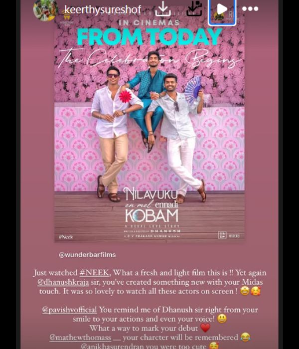 कीर्ति सुरेश ने की फिल्म की तारीफ