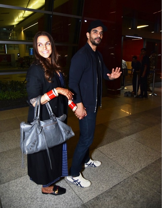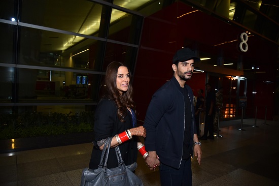 शादी के दिन ही हनीमून के लिए नेहा धूपिया और अंगद बेदी अमेरिका रवाना, देखें तस्वीरें
