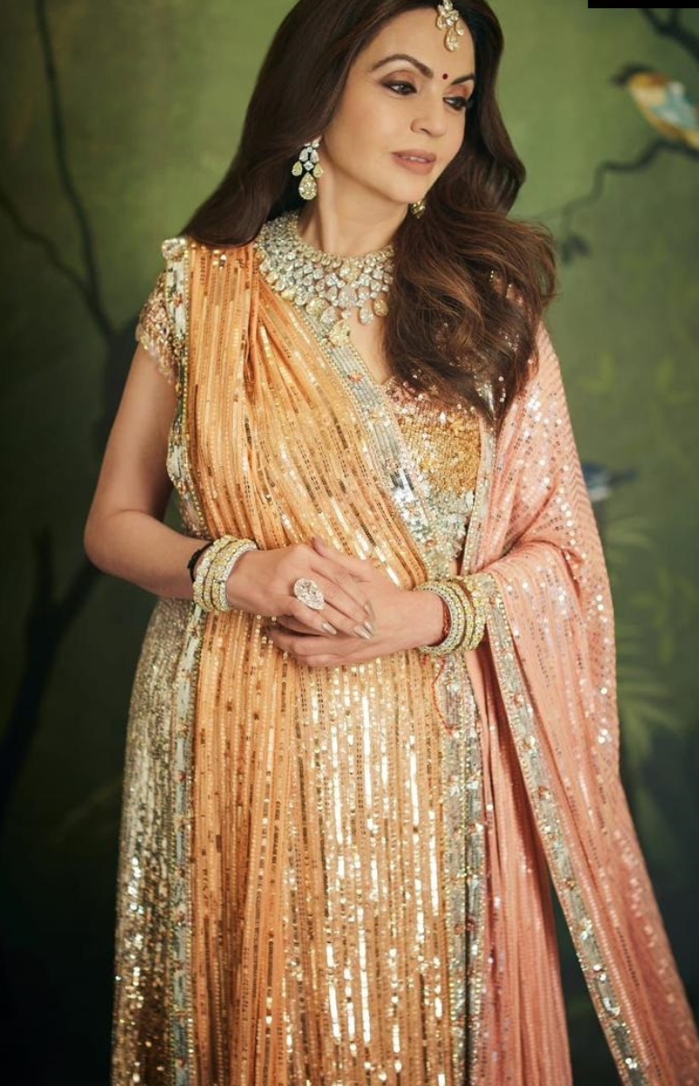 इसमें कोई दोराय नहीं कि नीता अंबानी (Nita Ambani) का हर लुक हर फंक्शन में शानदार होता है। उन्हें देखकर हर किसी की जवाब पर एक ही शब्द होता है अति सुंदर। इन दिनों नीता अंबानी का सोशल मीडिया पर प्री-वेडिंग फंक्शन का डे टू संगीत नाइट का लहंगा लुक वायरल हो रहा है, जिसमें उन्होंने फेमस डिजाइनर मनीष मल्होत्रा का डिजाइन किया हुआ खूबसूरत हैवी ऑरेंज लहंगा लहंगा पहना था।