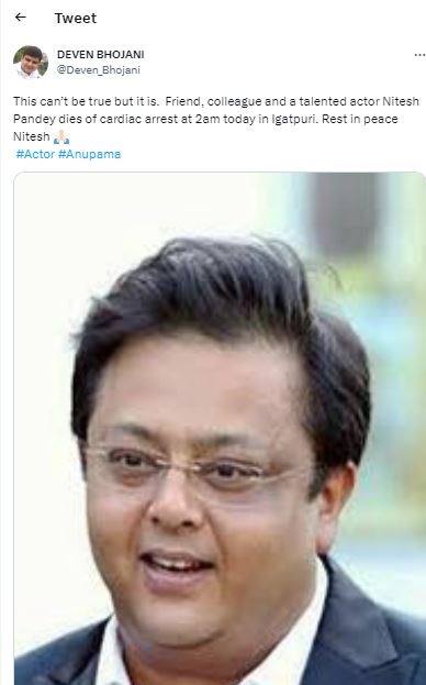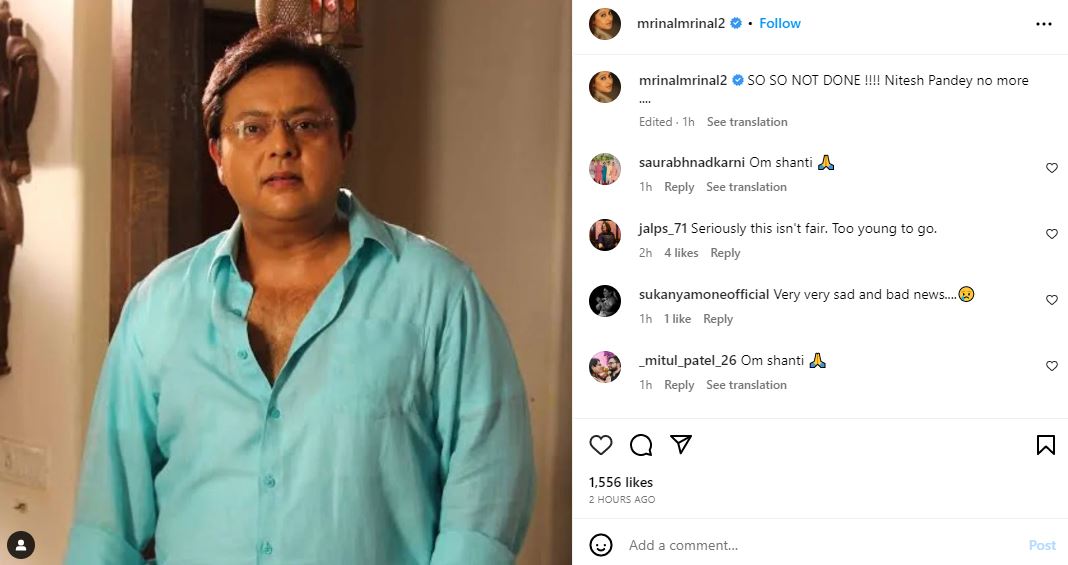 टीवी एक्ट्रेस मृणाल कुलकर्णी ने इंस्टाग्राम पर एक पोस्ट शेयर करते हुए लिखा, "ये बिल्कुल भी सही नहीं है। नितेश पांडे अब हमारे बीच नहीं रहे"।