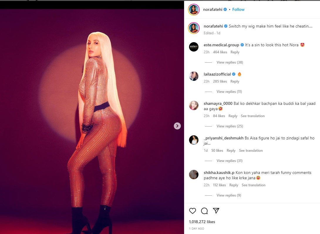 एक्ट्रेस के इस लुक को देखकर फैन ने उनकी तुलना लेडी गागा से की है। नोरा ने लुक को स्ट्रांग दिखाने के लिए ब्लॉन्ड हेयर स्टाइल रखा है। यहां तक कि आंखों का मेकअप भी कुछ ऐसा ही है।